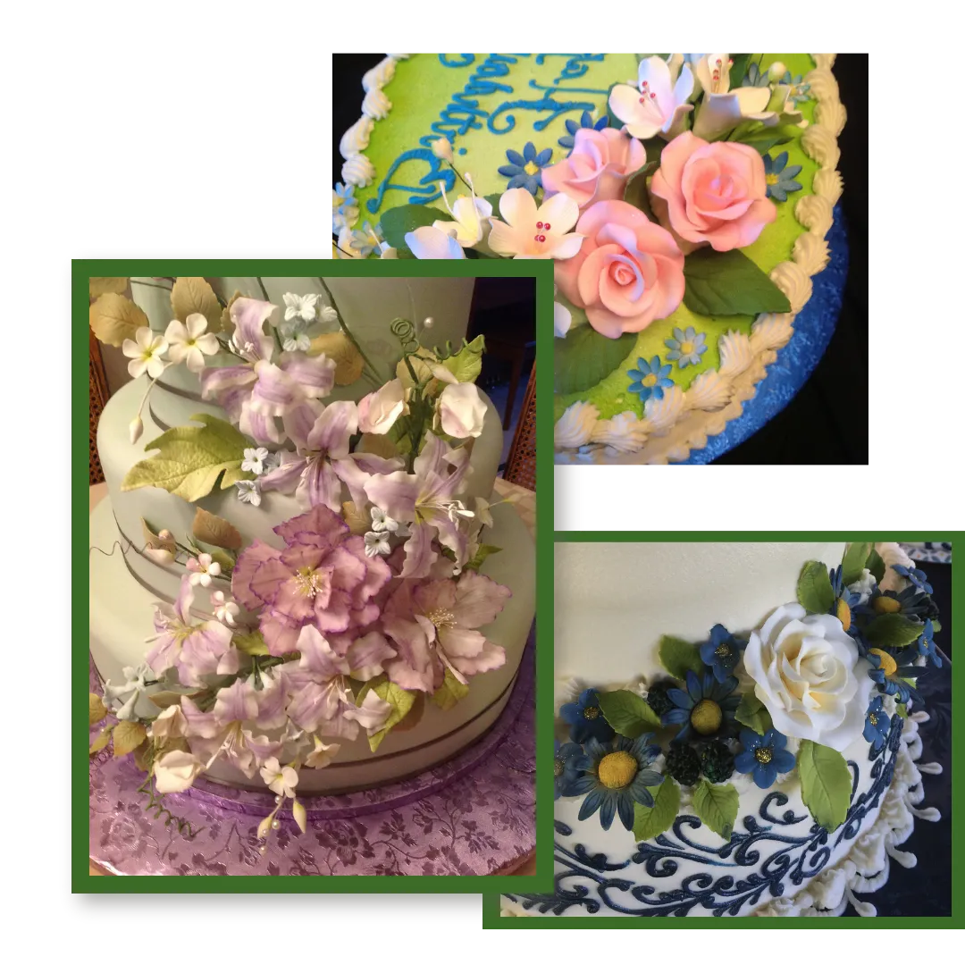 At the heart of Lucinda’s work is a simple belief: cake decorating is more than technique it’s about sharing joy, love, and creativity through sugar art. With her background in graphic design, she brings principles of balance, color theory, and composition into every cake, turning each one into a piece of edible art.